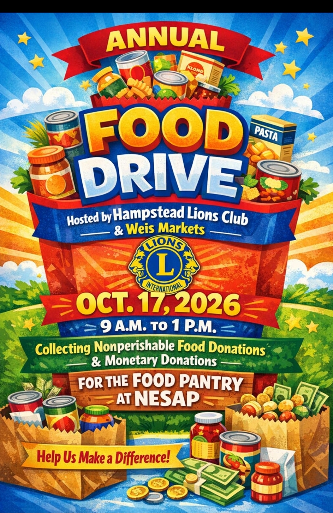 The Hampstead Lions Club and Weis Markets are teaming up for our Annual Food Drive to support the